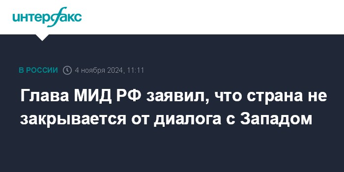 Глава МИД РФ заявил, что страна не закрывается от диалога с Западом