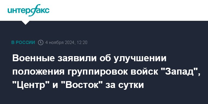 Военные заявили об улучшении положения группировок войск "Запад", "Центр" и "Восток" за сутки