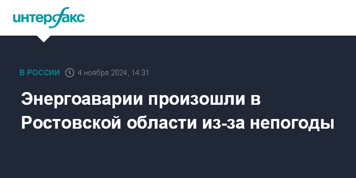 Как сообщалось, сильный ветер в субботу стал причиной аварийного отключения электроснабжения в Цимлянском, Азовском, Волгодонском, Аксайском, Сальском и Пролетарском районах, а также в Ростове-на-Дону, Батайске, Шахтах и Новочеркасске Ростовской области. В Волгодонском районе Ростовской области энергоавария привела к частичному отключению холодной воды в пяти населенных пунктах.