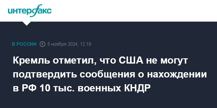Кремль отметил, что США не могут подтвердить сообщения о нахождении в РФ 10 тыс. военных КНДР
