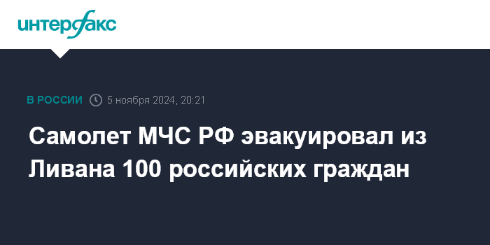 Москва. 5 ноября. INTERFAX.RU - Борт МЧС РФ доставил из Ливана сто российских граждан, в том числе 56 детей, сообщили в МЧС России во вторник.