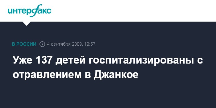 Москва. 4 сентября. INTERFAX.RU - Количество госпитализированных с пищевым отравлением детей в Джанкой увеличилось до 137.