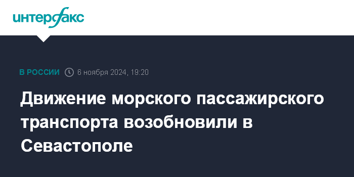 Москва. 6 ноября. INTERFAX.RU - Морской пассажирский транспорт в Севастопольской бухте возобновил работу после остановки в среду вечером, сообщается в телеграм-канале дирекции по развитию дорожно-транспортной инфраструктуры города.