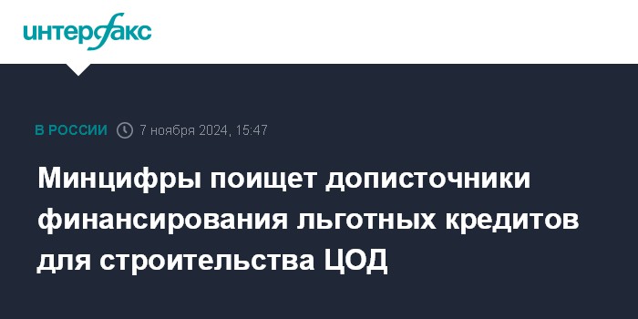 Минцифры поищет дописточники финансирования льготных кредитов для строительства ЦОД