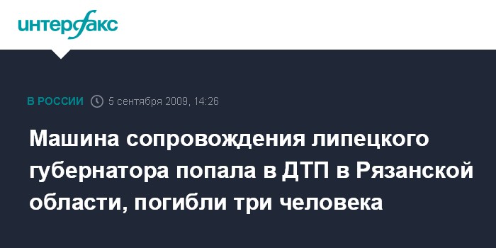 Машина сопровождения липецкого губернатора попала в ДТП в Рязанской области, погибли три человека