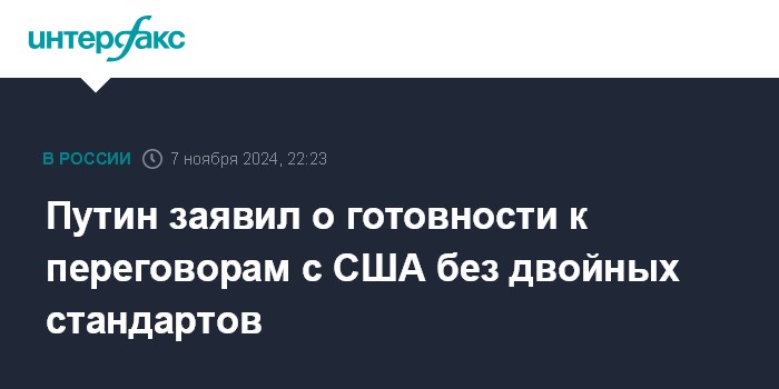 Путин заявил о готовности к переговорам с США без двойных стандартов