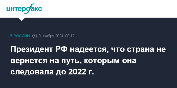 Президент РФ надеется, что страна не вернется на путь, которым она следовала до 2022 г.