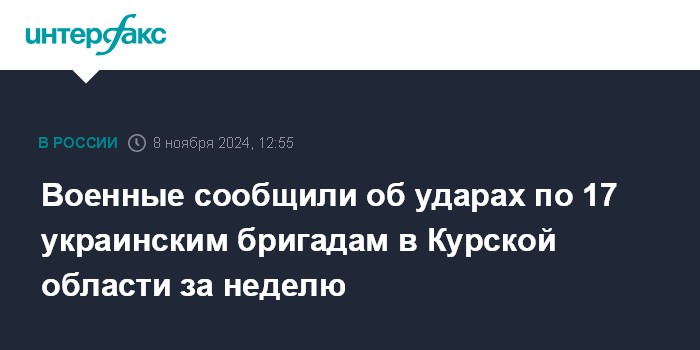 Военные сообщили об ударах по 17 украинским бригадам в Курской области за неделю
