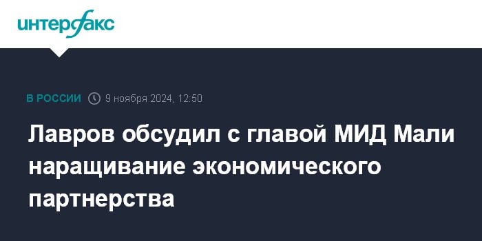 Москва. 9 ноября. INTERFAX.RU - Глава МИД РФ Сергей Лавров и министр иностранных дел Мали Абдуллай Диоп договорились о дальнейшем укреплении российско-малийских отношений.
