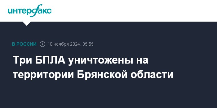 Москва. 10 ноября. INTERFAX.RU - Губернатор Брянской области Александр Богомаз сообщил об предотвращении атаки трех беспилотников по территории региона в ночь на воскресенье.