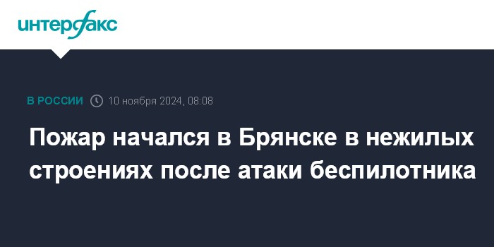 Москва. 10 ноября. INTERFAX.RU - Губернатор Брянской области Александр Богомаз сообщил о возгорании нежилых строений вследствие атаки БПЛА.