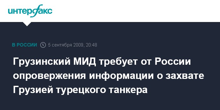 Тбилиси. 5 сентября. ИНТЕРФАКС - Министерство иностранных дел Грузии требует от российского внешнеполитического ведомства объяснений и опровержения распространенной им в субботу информации по поводу захвата грузинскими пограничниками турецкого судна.
