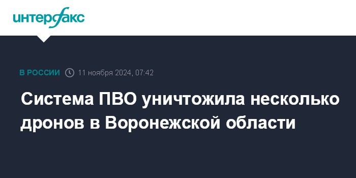 Москва. 11 ноября. INTERFAX.RU - Несколько украинских беспилотников уничтожены в Воронежской области силами противовоздушной обороны, сообщил губернатор региона Александр Гусев в своем телеграм-канале.