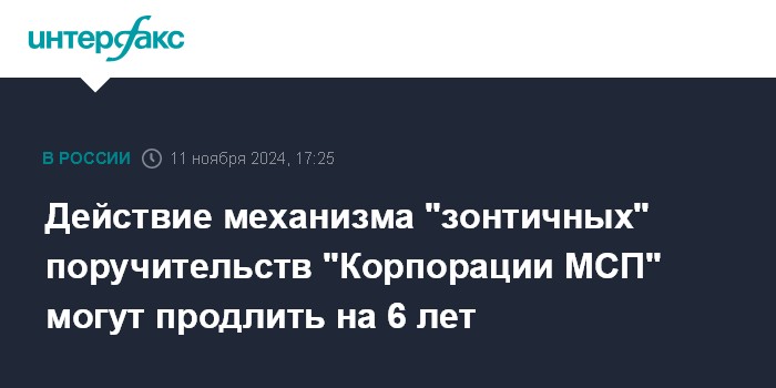 Действие механизма "зонтичных" поручительств "Корпорации МСП" могут продлить на 6 лет
