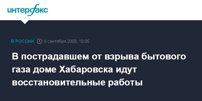Хабаровск. 6 сентября. INTERFAX.RU - В пострадавшем от взрыва бытового газа жилом доме в Хабаровске продолжаются восстановительные работы, специалисты ведут работы по укреплению несущих конструкций стен подъезда, в котором произошел взрыв.