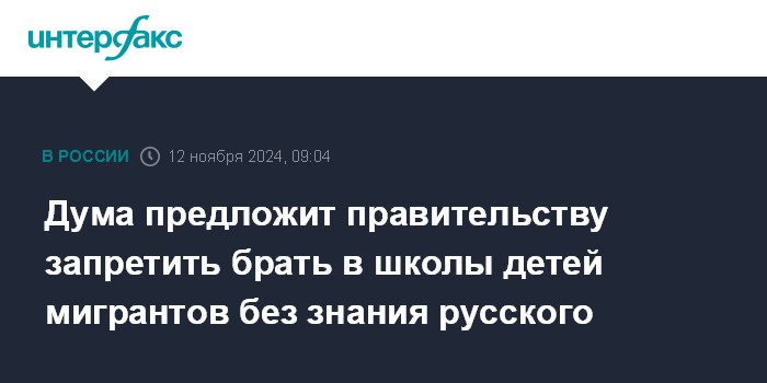 По его словам, в проекте постановления предлагается при зачислении в школы детей мигрантов "установить обязательность проверки законности пребывания иностранных граждан на территории Российской Федерации и прохождения тестирования на знание русского языка, а также запрет на зачисление в общеобразовательные организации без подтверждения знания русского языка".