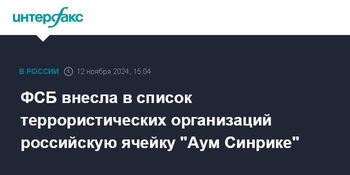ФСБ внесла в список террористических организаций российскую ячейку "Аум Синрике"