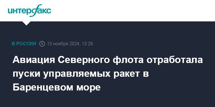 Москва. 13 ноября. INTERFAX.RU - Истребители Су-33 Северного флота произвели пуски управляемых ракет в рамках летно-тактического учения над Баренцевым морем, сообщила пресс-служба флота в среду.
