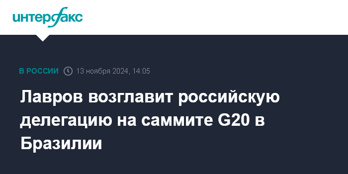 Лавров возглавит российскую делегацию на саммите G20 в Бразилии
