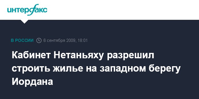 Лондон. 6 сентября. INTERFAX.RU - Кабинет министров Израиля одобрил план премьера Беньямина Нетаньяху, который предлагает санкционировать строительство жилых домов с сотнями квартир в еврейских поселениях на западном берегу реки Иордан.