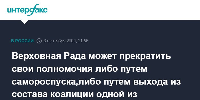 Верховная Рада может прекратить свои полномочия либо путем самороспуска,либо путем выхода из состава коалиции одной из политических сил - Ющенко