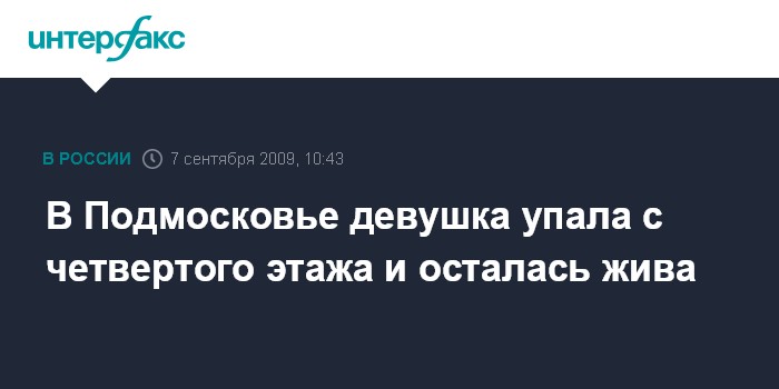 Москва. 7 сентября. INTERFAX.RU - В подмосковном поселке Калинино молодая девушка выпала из окна четвертого этажа, сообщил "Интерфаксу" источник в правоохранительных органах в понедельник.