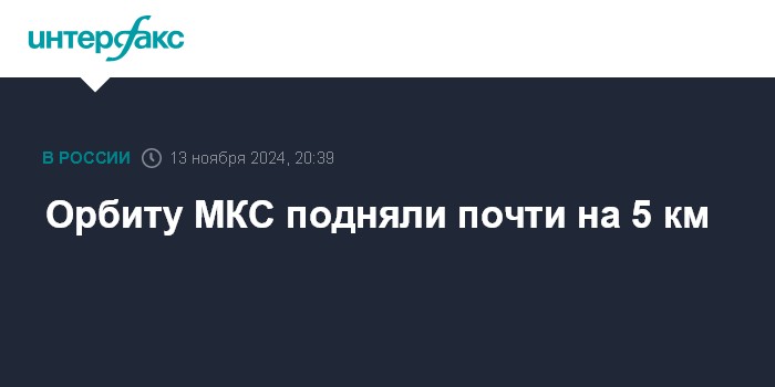 В результате средняя высота орбиты станции увеличилась на 4,9 км и составила 417,23 км над поверхностью Земли, заявили в "Роскосмосе".
