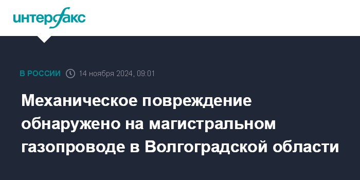 Механическое повреждение обнаружено на магистральном газопроводе в Волгоградской области