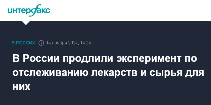 Москва. 14 ноября. INTERFAX.RU - Эксперимент по отслеживанию лекарственных средств и сырья, используемого для их производства, продлен на полгода - до 30 июня 2025 года, соответствующее решение принято правительством РФ.