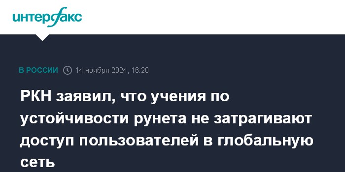 РКН заявил, что учения по устойчивости рунета не затрагивают доступ пользователей в глобальную сеть