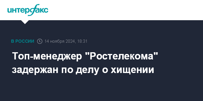Топ-менеджер "Ростелекома" задержан по делу о хищении