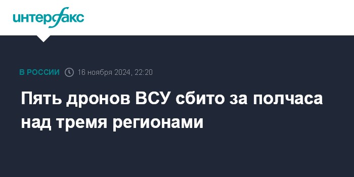 Пять дронов ВСУ сбито за полчаса над тремя регионами