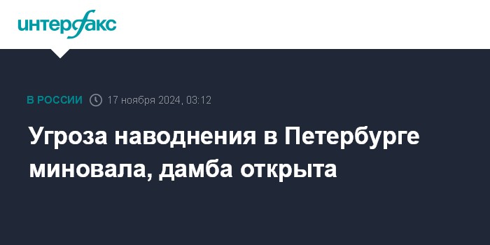 Угроза наводнения в Петербурге миновала, дамба открыта