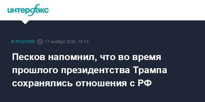Песков напомнил, что во время прошлого президентства Трампа сохранялись отношения с РФ