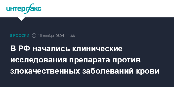 В РФ начались клинические исследования препарата против злокачественных заболеваний крови
