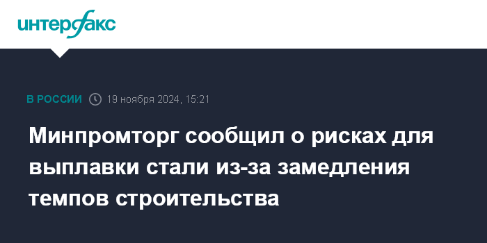 Москва. 19 ноября. INTERFAX.RU - Минпромторг прогнозирует выплавку стали и производство стальных изделий в России в 2024 году на уровне 73 млн тонн, при этом ведомство обращает внимание на риски, связанные с охлаждением строительного сегмента и повышением ставок ипотечного кредитования.
