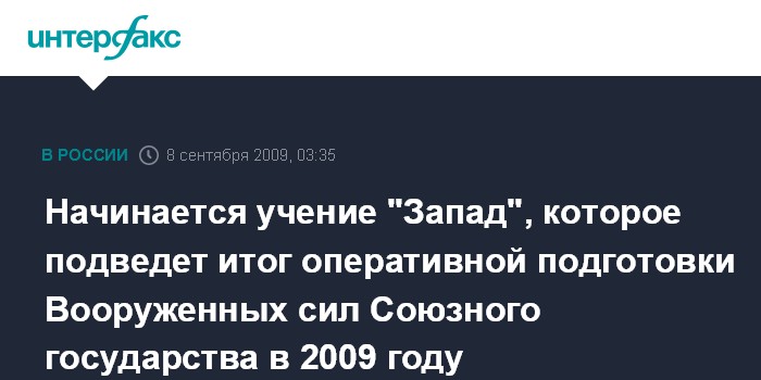 Москва. 8 сентября. ИНТЕРФАКС - Оперативно-стратегическое учение (ОСУ) "Запад-2009" пройдет с 8 по 29 сентября под общим руководством начальников генеральных штабов Вооруженных сил Белоруссии и России, сообщили "Интерфаксу" в Управлении пресс-службы и информации Министерства обороны РФ.