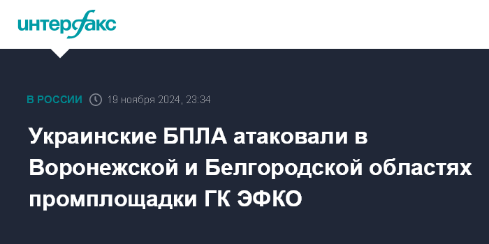 Украинские БПЛА атаковали в Воронежской и Белгородской областях промплощадки ГК ЭФКО