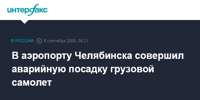 Москва. 8 сентября. INTERFAX.RU - Из-за неисправности двигателя в аэропорту Челябинска совершил аварийную посадку грузовой самолет, никто не пострадал.