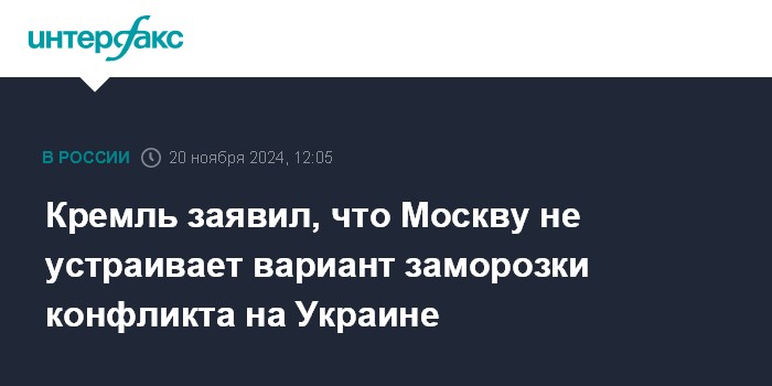 Москва. 20 ноября. INTERFAX.RU - Вариант заморозки конфликта на Украине России не подходит, поставленные цели должны быть достигнуты, заявил пресс-секретарь президента РФ Дмитрий Песков.