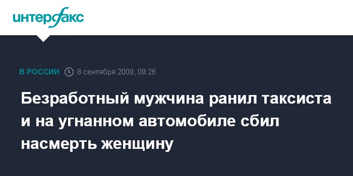 Безработный мужчина ранил таксиста и на угнанном автомобиле сбил насмерть женщину