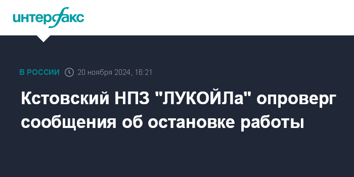 Кстовский НПЗ "ЛУКОЙЛа" опроверг сообщения об остановке работы