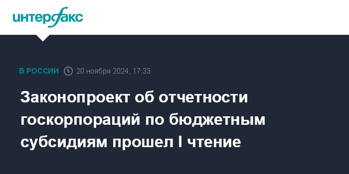Законопроект об отчетности госкорпораций по бюджетным субсидиям прошел I чтение