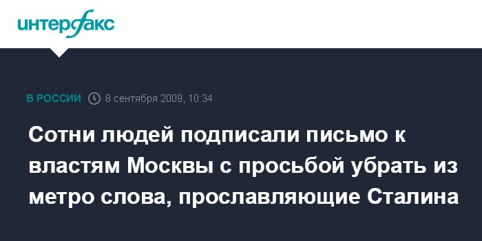 Сотни людей подписали письмо к властям Москвы с просьбой убрать из метро слова, прославляющие Сталина