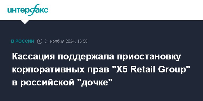 Кассация поддержала приостановку корпоративных прав "X5 Retail Group" в российской "дочке"