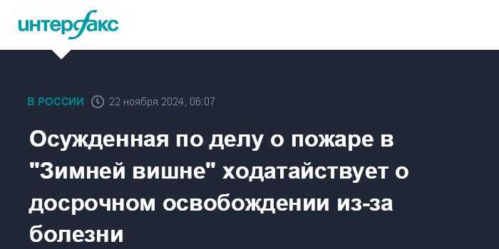 Осужденная по делу о пожаре в "Зимней вишне" ходатайствует о досрочном освобождении из-за болезни