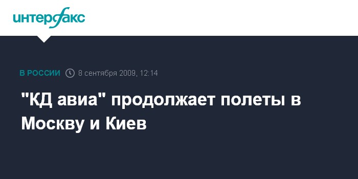 Москва. 8 сентября. INTERFAX.RU – ОАО "КД авиа" продолжает выполнять регулярные рейсы на направлениях Москва и Киев, сообщили "Интерфаксу" во вторник в справочной службе аэропорта "Храброво".