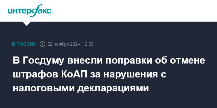 В Госдуму внесли поправки об отмене штрафов КоАП за нарушения с налоговыми декларациями