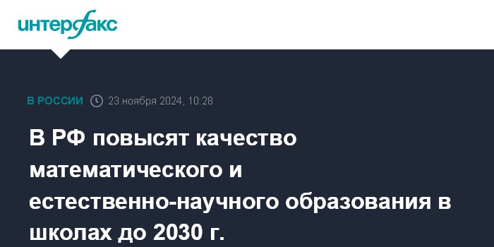 Москва. 23 ноября. INTERFAX.RU - Правительство РФ утвердило комплексный план мероприятий по повышению качества математического и естественно-научного образования в школах до 2030 года, сообщается в субботу на сайте российского кабинета министров.