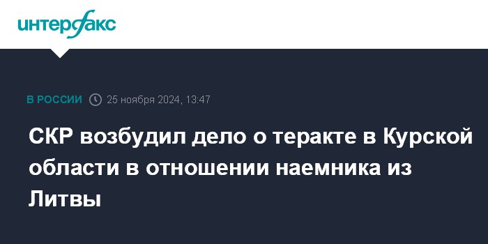 СКР возбудил дело о теракте в Курской области в отношении наемника из Литвы